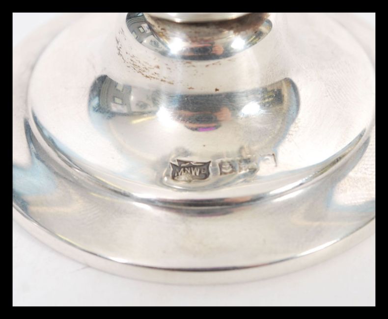 A hallmarked silver stem / solifleur vase by Mappin & Webb having a bulbous knop decorated with celtic knot and animal face masks, a stepped base and tapering body. Hallmarked Birmingham, weight 80.8g. 15cm H  x 5.5cm diameter.