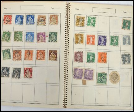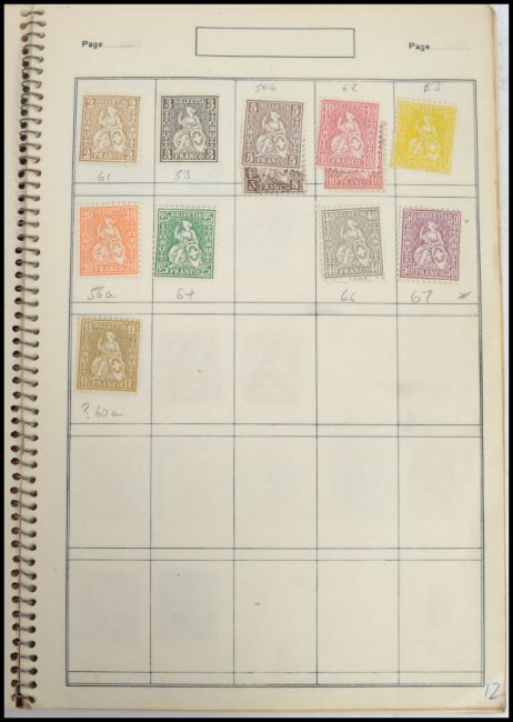Switzerland Stamps: 1854/1930 mint and used collection in small old approval book including 1854/62 vals to 40r U 1867/78 vals to 50c M 1908/40 valls to 1f U selection of Pro Juve tute, etc. Book measures 23 cm high and 16 cm wide.