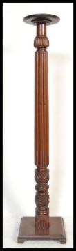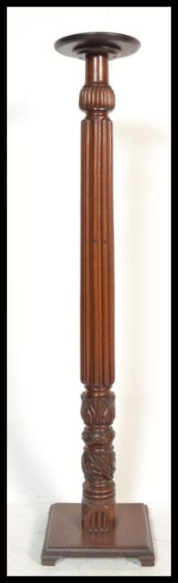 A 19th century Victorian mahogany torchere plant stand of tall form raised on tripod base with reeded column and circular terraced top. Measures: 137cm high.