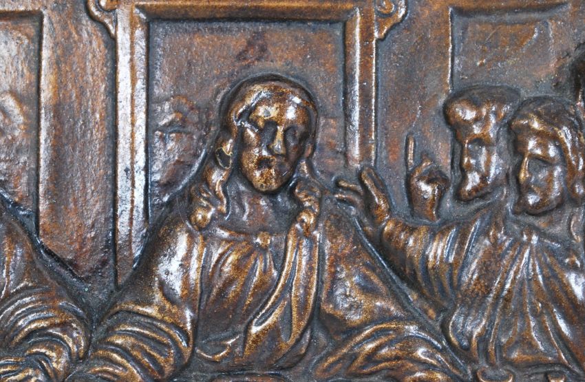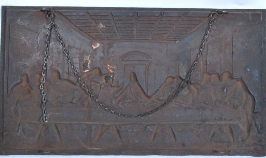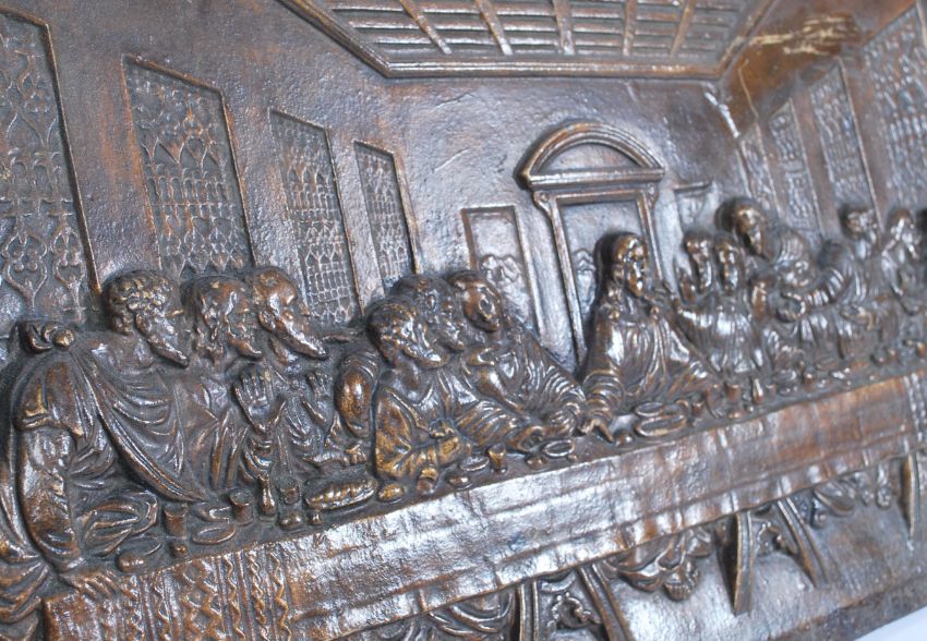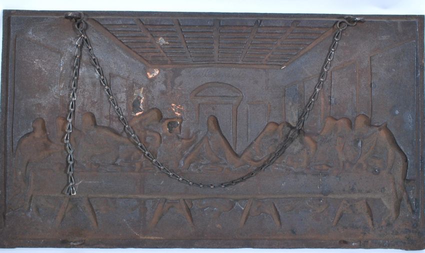 A 19th century Victorian Coalbrookdale cast iron rectangular plaque being cast in relief with a depiction of ' The Last Supper ' inscribed to reverse ' Coalbrookdale ' Measures 66cms x 37cms
