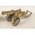 A pair of good early 20th century desk top Napoleonic brass cannons. The detailed, good sized brass canon each raised on solid brass large carriages bases with wheels. Measures 46cms high x 21cms high