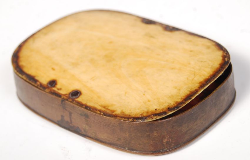 A believed 16th Century Russian Orthodox Christian devotional diptych travelling icon constructed from two panels of ivory set within a hinged brass case. The interior is painted with two religious scenes with gilt detailing. The left hand panel depicts Christ seated holding a blessing hand gesture flanked by St John the Baptist and Mary Magdalene having crossed arms in the gesture of Communion, with the right hand panel depicting two priests during the ritual of Holy Fire both showing blessing hand gestures with one priest holding a piece of burning wood, above them sit the Holy Trinity with both hands resting on an orb representing the world. These travelling icons were used by Priests to spread the word of God and inspire the faithful and convert non Christians to the Orthodox faith from as early as the 10th Century.