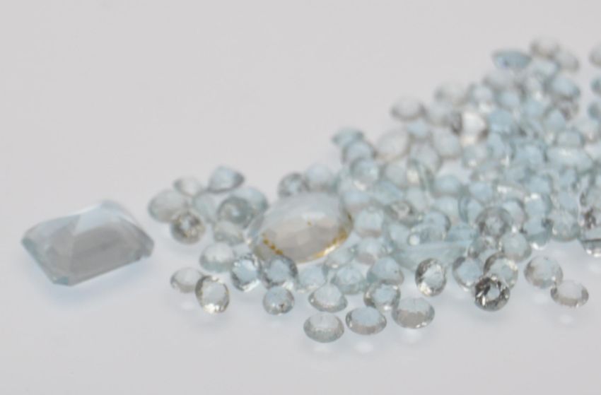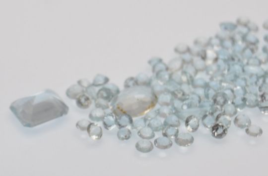 A selection of round mixed cut Aquamarine loose gemstones to include two oval mixed cut and an emerald cut. Emerald cut approx 8mm x 10mm x 4.8mm, Round ranging around 2mm - 3mm diameter. Total weight approx 21ct.