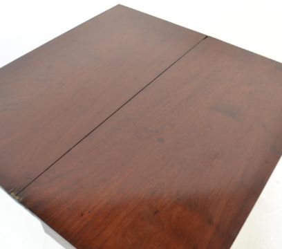 A George III 19th century mahogany and line inlaid tea table. Raised on squared legs with fitted frieze having fold over tea table top supported by gate leg action. Measures 71cms high x 89.5cms wide x 43.5cms depth