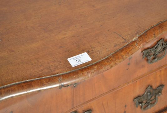 A late 18th / 19th century Dutch walnut bombe chest of drawers. The chest with shaped top above a bank of four graduated drawers with  impressing cast swag and cartouche escutcheons and drop swing handles. All raised on carved lion's paw feet centred with an embellished urn to the apron. Measures 84cms high x  109cms wide ( at feet ) x 57cms depth
