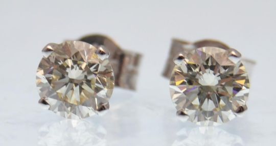 A pair of white gold ladies diamond stud earrings being claw mounted having post backs. Total estimated diamond weight 1.1cts. Complete in presentation box.