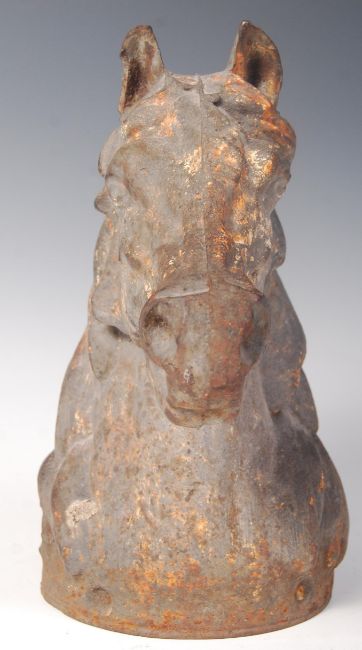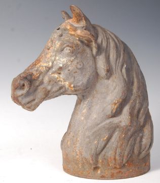 A rare 19th century Victorian cast iron horse tether being in the form of a horse's head and showing signs of the original paintwork in places. Measurs 27cms deep.