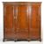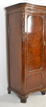 A Victorian 19th century rosewood serpentine fronted Maple & Co triple compactum wardrobe. Raised on bracket feet with an upright triple section comprising hanging wardrobes flanking a central linen press over chest of drawers. The doors and column sides with stunning gilt wood embellishments having flared cornice atop. The inside doors with mirrors. Maple & Co label upper centre. Matching double wardrobe in lot 348 and dressing table in 347. Measures 205cms high x 210cms wide x 66cms depth ( dismantles for ease of movement )