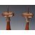 A 17th century pair of large wooden pricket candlesticks having turned columns over square plinth bases with prickers over circular sconce trays all with remains of believed original paint. Measures 47cms high