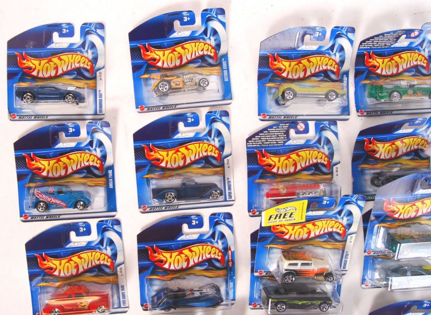 A collection of 32x assorted Hot Wheels carded diecast model cars by Mattel. Largely from the 2002 series. All appear mint and factory sealed upon their original card backs. Good collection.