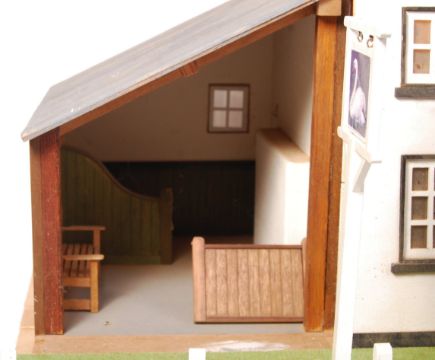 A good unfinished 20th century dolls / doll's house pub ' Swan Inn '. Hand made, wooden construction, with covered garden annex and grass frontage present. Scale model hanging sign to outside. Removable front. Well modelled inside with wooden bar and barrels, and various fireplaces etc. Upstairs rooms unfinished, and only a section of the roof present. A good project dolls house. Measures approx; H61cm x W102cm x D58cm.WORLDWIDE DELIVERY AVAILABLE: For UK rates, please click the 'Shipping' tab and view rates for furniture delivery. Please contact us for a specific quote. All prices dependant upon exact location.