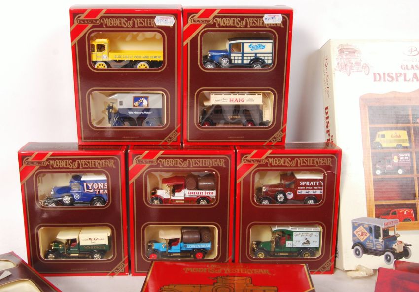 A good collection of 12x assorted Matchbox and Matchbox Models Of Yesteryear gift sets / boxed sets of diecast models. To include; ' Christmas Treasures ', trio and double diecast sets etc. All largely advertising / promotional related. All contents appear mint and unused. Boxed. Along with a boxed display cabinet.