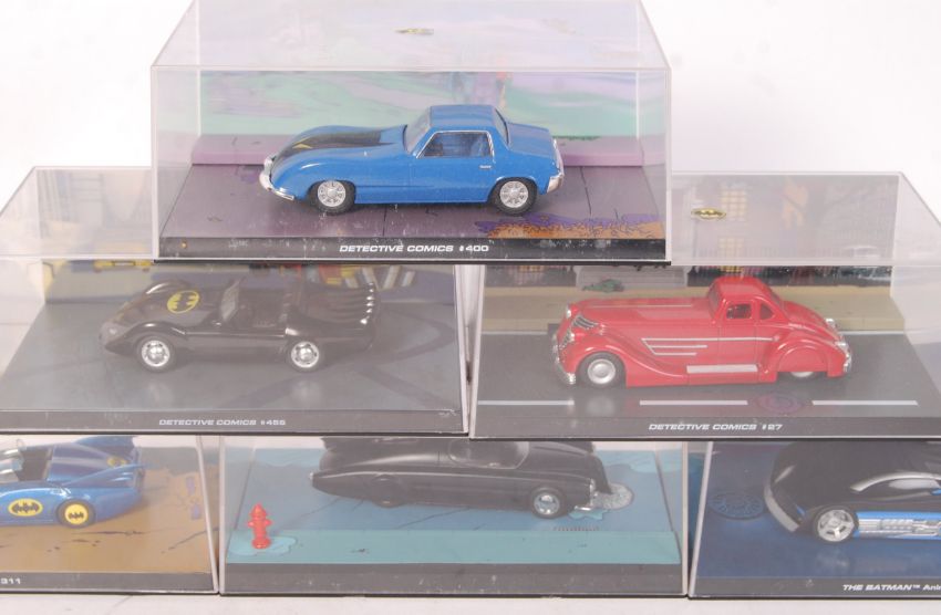 A collection of TV & Film related boxed diecast models, comprising: 6x Eaglemoss Batman Collection diecast models, an Only Folls & Horses Reliant Regal Supervan III model by Lledo and a Lledo Beano Anniversary model set. All contents appear mint and unused.