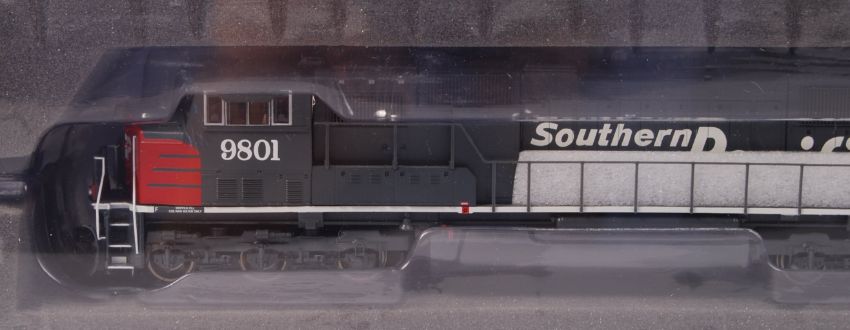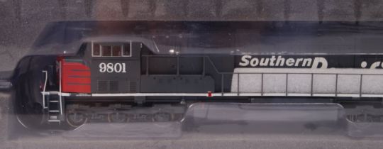 A rare Genesis 00 gauge railway trainset locomotive - G62203 Southern Pacific SD70M #9801. Appears mint, very likely unused, within the original presentation box. With instructions and all inner packing present.