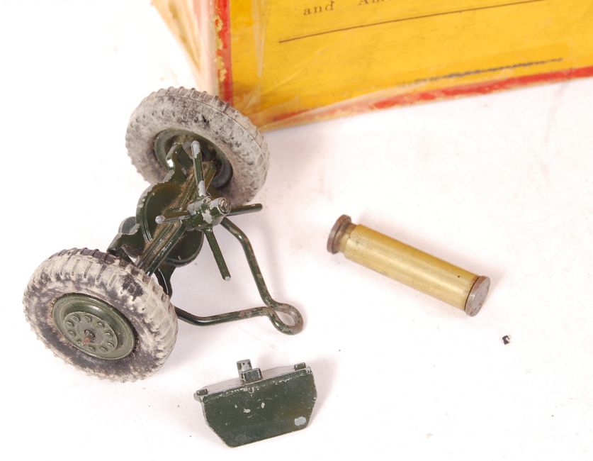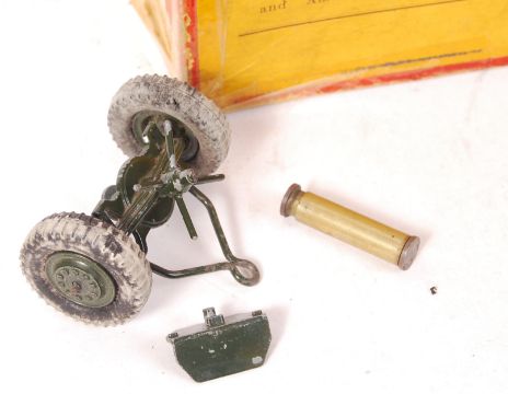 An original vintage Britains made diecast model ' 155mm Gun ' No. 2064. Appears complete, but playworn, within it's original box (tatty). Highly detailed model.