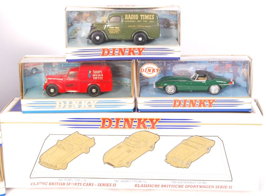 A collection of 11x Dinky Matchbox made boxed 1:43 scale diecast model cars. All contents appear mint, within the original display boxes. To include; DY-903 (Trio set), DY-1, DY-8, DY-24, DY4 and others.