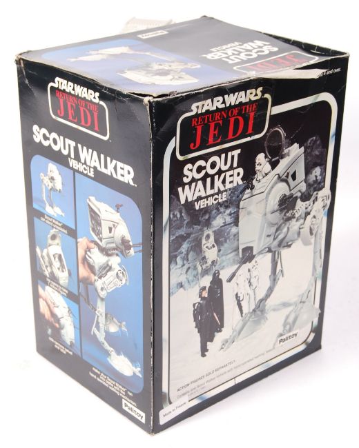 An original vintage Palitoy made Star Wars ' Scout Walker Vehicle ' action figure playset. Appears 100% complete - including the top gun and original instructions present. Within the rarer Hoth picture ' Return Of The Jedi ' box. ' Made In France ' label to front. Box very good. Wonderful example. Rare.