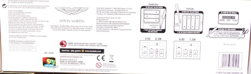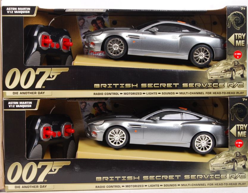 A good complete ex-shop-stock box of 6x ' Toy State ' made James Bond ' Die Another Day ' R/C Radio Controlled ' Aston Martin V12 Vanquish ' model cars. All cars mint & complete with remote controls, within their original boxes and outer trade box.