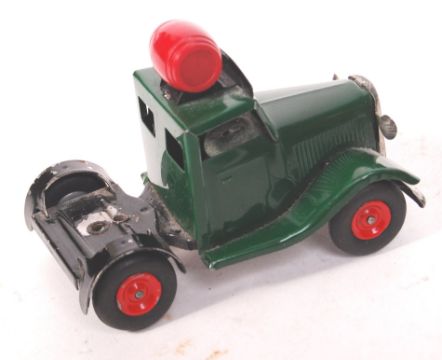 A rare vintage Triang / Tri-Ang Minic Toys made tinplate clockwork ' Watneys Ale ' wagon / truck. Complete with Red Barrel to top, and trailer (still largely retaining the ' Watneys ' paintwork to the rear). No key, but in full working order. Charming model.