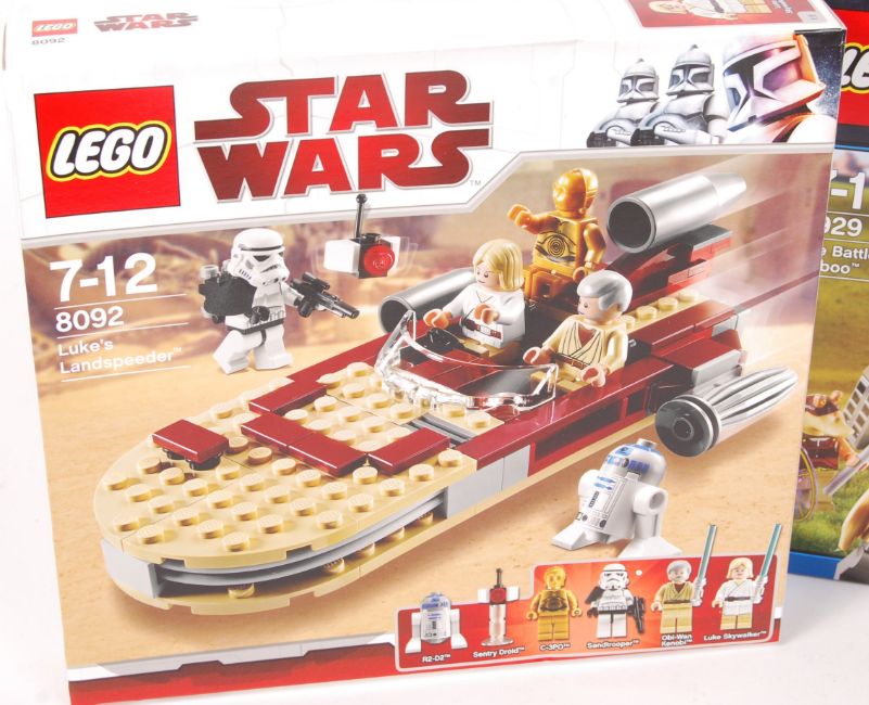 Two Lego Star Wars sets: 7929 ' The Battle Of Naboo ' and 8092 ' Luke's Landspeeder '. Both factory sealed, mint and as new.