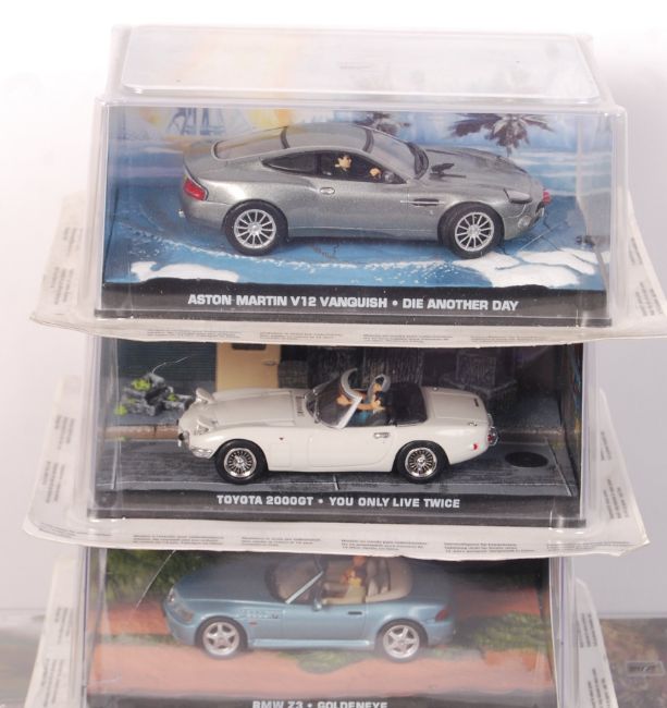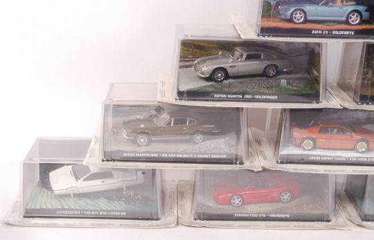 A collection of 12x Eaglemoss made James Bond 007 Collection diecast model cars. All appear mint and factory sealed, within their original display boxes with dioramic bases. Great collection, well detailed.
