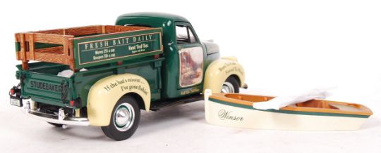 An original Ertl Collectibles 1:24 scale precision diecast model 1947 Studebaker & Fishing boat ' Thom's Bait Tackle '. Appears mint within the original box.