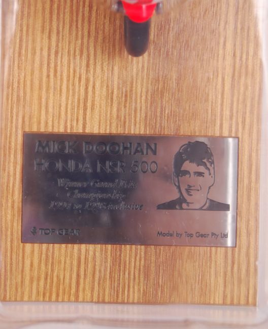 A superbly detailed 1:43 scale precision diecast model by Top Gear. From the ' Legends ' series. TGL02 - Mick Doohan, Honda NSR 500 Motorcycle / motorbike. Ex-shop-stock, mint+ unused condition. Within the original box, and outer shipping box. Highly detailed model.