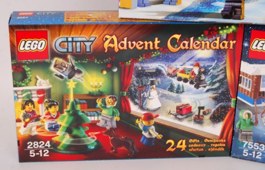 A collection of 3x Lego City themed Christmas advent calendar sets. All factory sealed, mint and as new. Comprising sets: 7553, 2824 and 7907. Great collection.