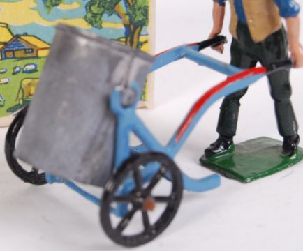 An original vintage Britains Farm lead / hollowcast figure set 5034 ' Man With Tank On Wheeled Carrier .' Appears near mint, within the original box.