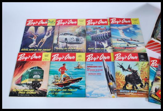 A collection of vintage mid century Boys Own magazines to include complete sets for 1961 and 1962, Aug, Nov and December for 1960 and Jan to Aug 1963. Together with a collection of Meccano magazines for 1957 complete, and sept, oct, nov and dec 1956