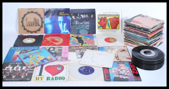 A selection of 1980's vinyl singles records to include Jason Donovan, Julio Iglesias, E.T, Speaks, Baccara, Simple Minds, Samantha Fox, ZZ Top, Commodores, Cliff Richard etc.