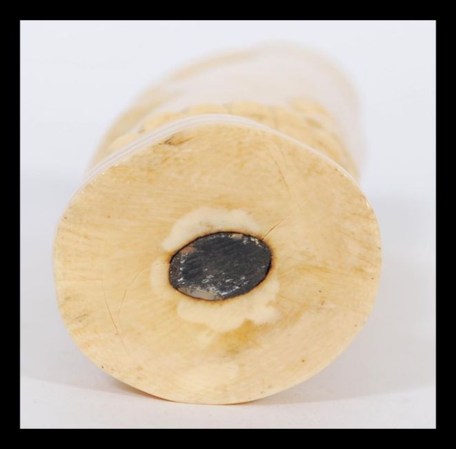 An early 20th century Ivory vase having relief decoration of alligators / crocodiles with scalloped ring. Measures 18cm high 5cm wide.