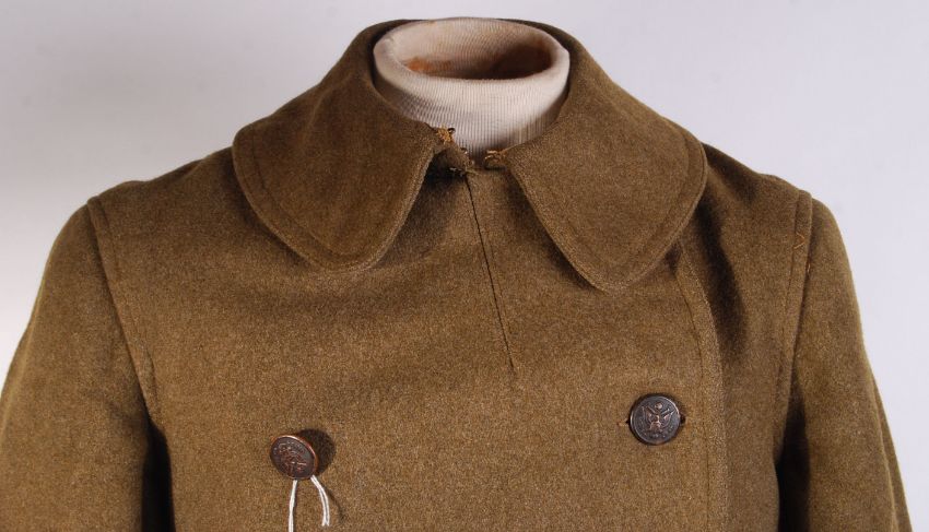 An original WWII Second World War American military uniform great coat / over coat. Complete with the Great Seal motif buttons to exterior and interior pockets. Size not known, but appears medium to large.