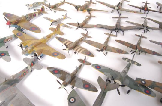 A collection of 30x assorted hand made well detailed scale model aeroplanes and aircraft from 20th century conflicts to include; Spitfires, Jets and others.