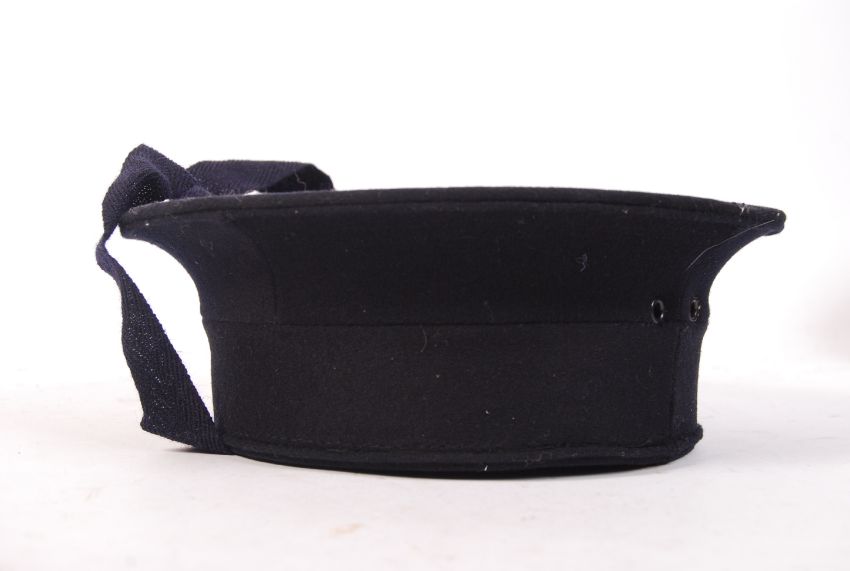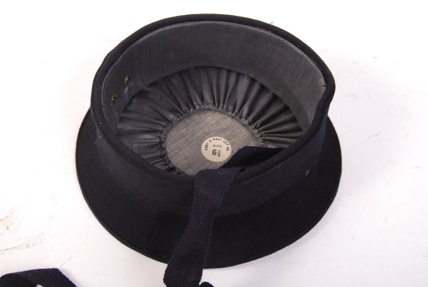 An original WWII Second World War era Royal Navy / Naval black woollen sailor's uniform hat. Army & Navy Cap Company makers label to interior, and size 6 5/8. Great condition for age.