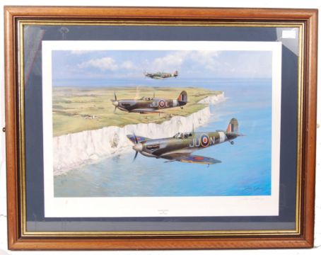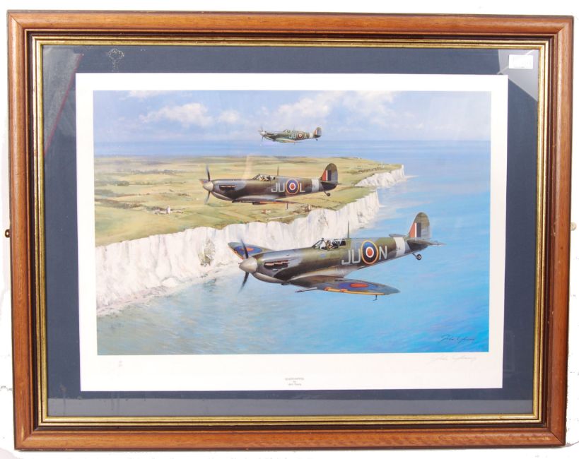 ' Dover Patrol ' by John Young  - beautiful limited edition print depicting 3x Spitfires flying over the white cliffs of dover. No. 196 of 850 editions. Signed to the corner by the artist in pencil. Professionally framed and glazed to a total size of: 67cm x 87cm.* a percentage of the hammer price of this lot is donated towards ' The Attack On The Sorpe Dam ' film.NOTE: Proceeds from this lot are being donated towards the ' Attack On The Sorpe Dam ' film project. The film tells the story of the famous Dambusters raid of WWII, and features testimony from George 'Johnny' Johnson himself. A preview of the footage completed so far, as well as an appearance by George 'Johnny' Johnson, is taking place on February 9th at The Watershed Cinema in Bristol. Tickets can be purchased here: www.dambusters.eventbrite.co.uk )