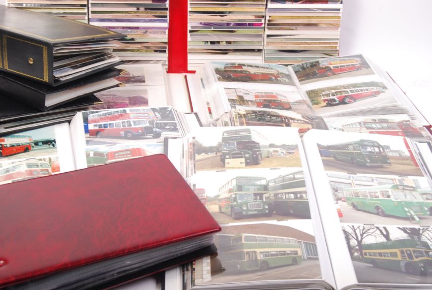 A large collection of photos ( some 1400+ ) by bus spotter. Largely full colour. Most 6x4" approx, with some (120) smaller.Mostly c1980's-2000 English. Single/double decker buses and related .Impressive Omnibus collection. x11 albums.