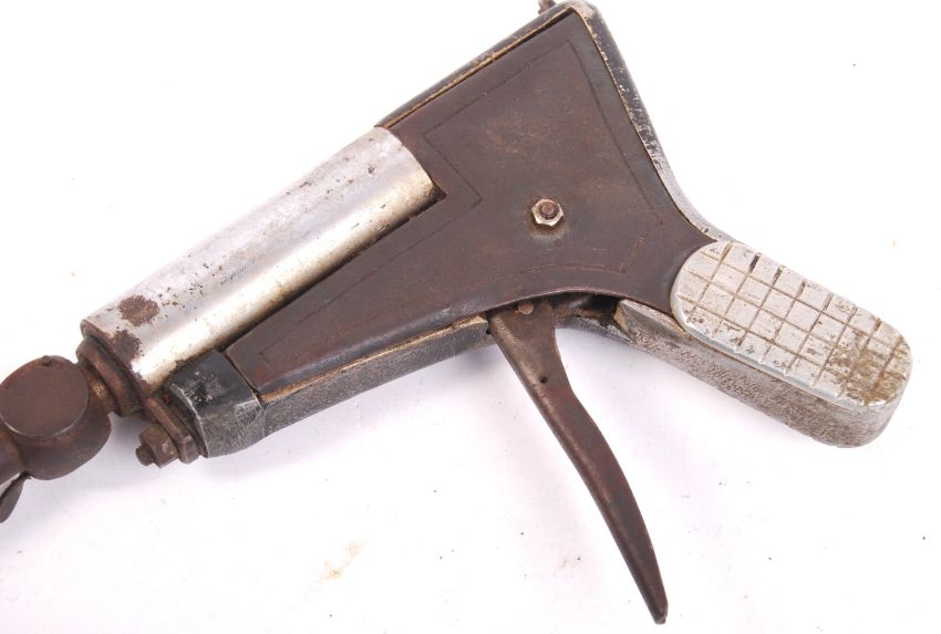 An unusual vintage .177 calibre air pistol. Self cocking action (just load and pull trigger). With chequered grips and sights to top. Full working order. Measures approx; 24cm long.