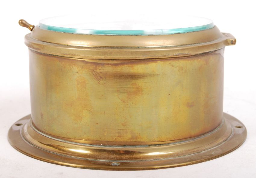 A mid-20th century local interest ' Mercer St Albans ' brass cased ship's clock. Having a painted face with Arabic numerals to the chapter ring and faceted hands. By repute removed  from the ' Harry Brown ' (sand dredger) ship operating for ' Holms Sand & Gravel Co ', in Bristol, built in c1962.
