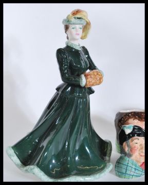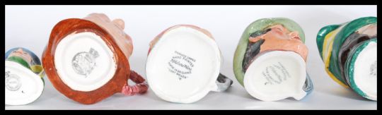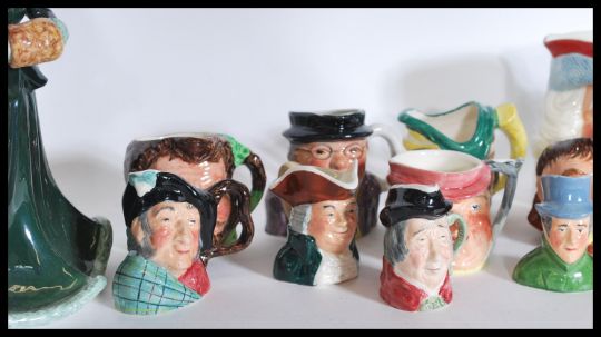 A collection of 20th Century toby jugs to include exampled by Royal Doulton together with a Coalport ceramic figurine. Tallest 12cm high.