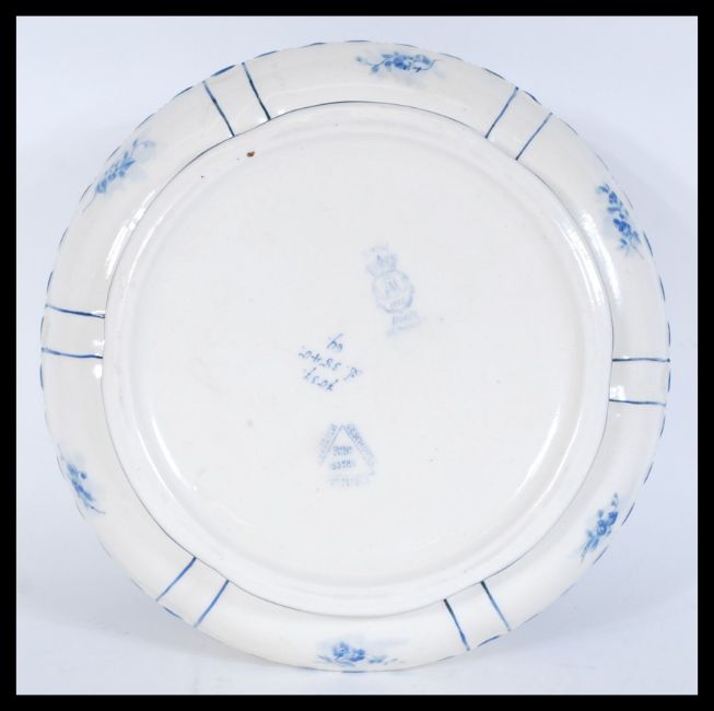 A 19th Century Victorian centre bowl with silver plated collar, the blue and white bowl decorated in relief with floral swags, stamped to the baser Royal Bonn. 12cm high 20cm diameter.