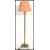 A vintage early 20th century Antique style marble and brass floor standing lamp raised on paw feet with square base with central brass Classical Corinthian column and pink shade atop. Measures: 167cm tall.