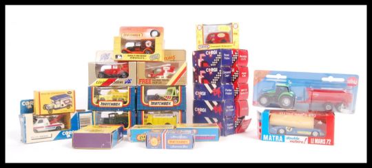 A GOOD collection of assorted diecast scale model vehicles by Matchbox, Corgi, Solido, Siku, Lesney and more to include; Matchbox MB-69, MB-61, MB-50, MB57, Superfast 62,Solido Matra 670, Lesney 62, 1. All within their original packaging boxes.
