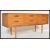 A mid century teak wood Danish influence sideboard credenza. Raised on tapering legs with a series of drawers to the wide body with oval shaped handled to each. Measures: 65cm high x 144cm wide x 42cm deep.