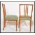 A set of 6 mid century teak wood dining chairs in the manner of Peter Hayward for Vanson furniture. Raised on teak wood tapering legs with overstuffed seats having railed back rests. Measures: 86cm high x 48cm wide x 48cm deep.