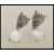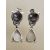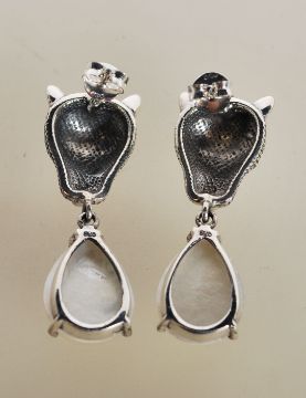 A pair of sterling silver and marcasite decorated designer earrings in the form of panthers having moonstone cabochon drops. Weighs 12 grams.