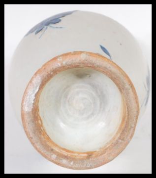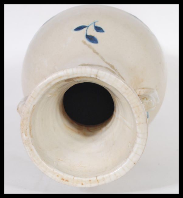 A 20th Century Chinese large vase having blue and white decoration of butterflies with twin elephant handles. The neck having four blue character reign marks. Early repairs. Measures 36.4cm high.