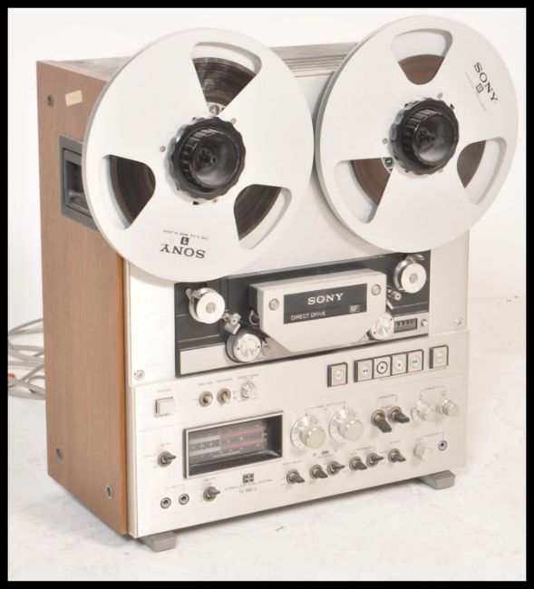 A vintage retro teak cased Sony model No TC 880 - 2 closed loop dual capstan reel to reel /  tape / cassette corder player. Carry handles to the side.