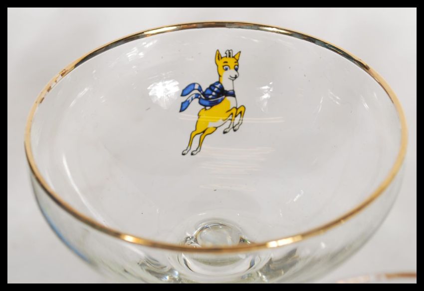 A collection of seven retro and vintage Babycham advertising point of sale glasses together with a selection of unopened Babycham bottles.