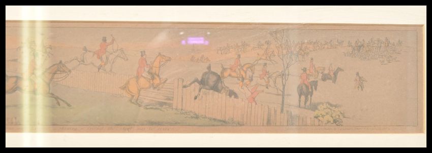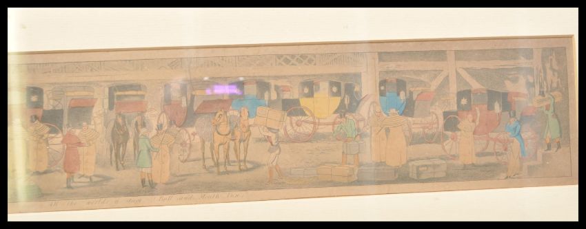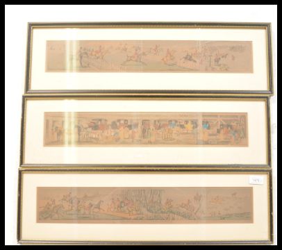 A collection of three 19th Century Victorian hand coloured etchings, the pictures depicting hunting scenes and coaching scenes.